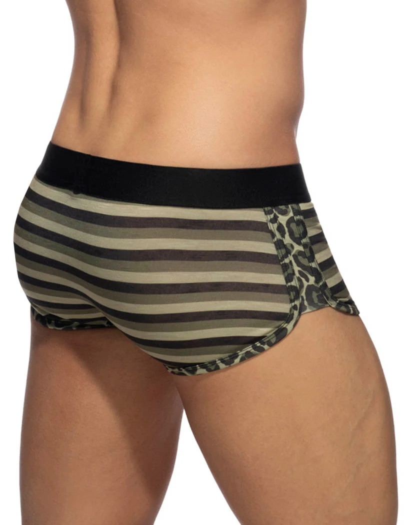 The Addicted Leo-Stripe Trunk is made of smooth, sleek material. The trunk has two different patterns throughout in addition to color contrast trim. Its low rise waist is held in place by an exposed waistband. The sides have double openings for fashion and increased leg mobility. The full coverage rear keeps you modest and comfortable.
