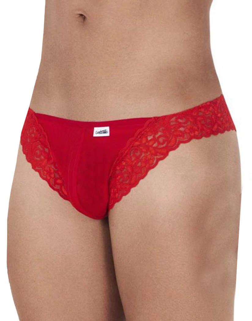 This Candyman Mesh-Lace Thong is sweet and sexy. The thong is made of sheer, solid-colored material. It’s trimmed by wide lace around both legs. This pair of underwear falls below the waist for a sexy silhouette and uses its design to hold you up instead of a waistband. The minimal coverage rear shows you off while the seamed pouch provides support. You’ll love this exciting new style.