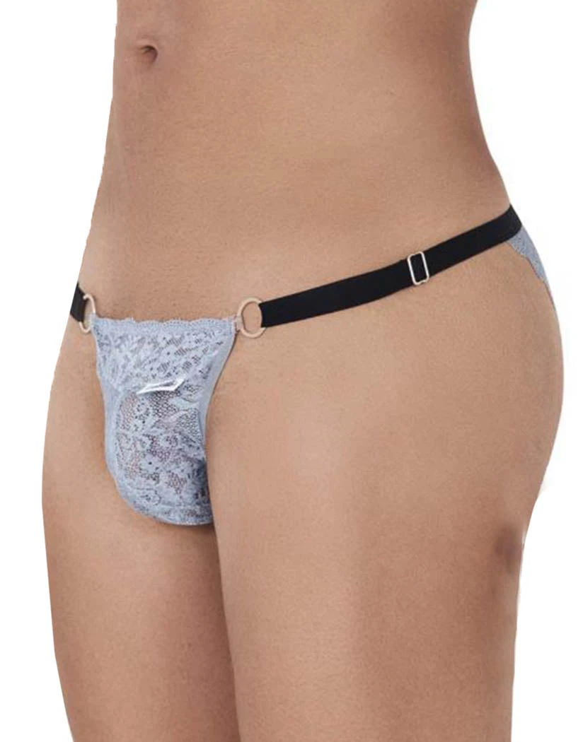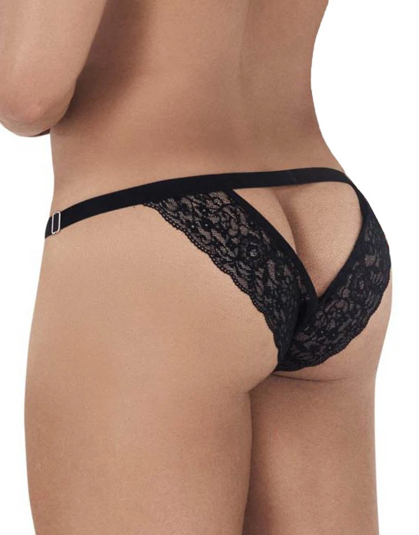 The Candyman Peekaboo Lace Bikini is a sexy and unique style. This bikini is made of lace fabric with ring details on either side. Its low-rise waist is held in place by a thin, elastic ribbon waistband. The minimal coverage rear has a stunning and daring back cut out. You’ll never find another pair quite like this.
