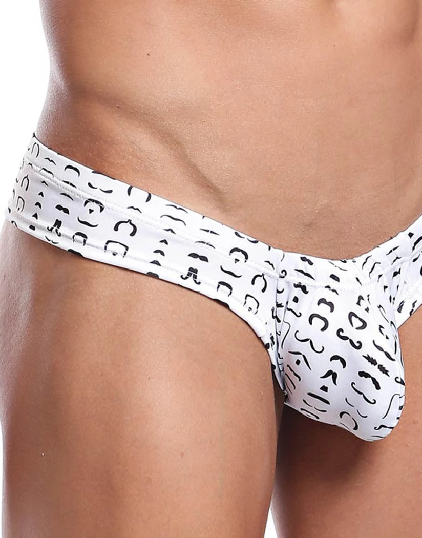 The Daniel Alexander Mustache Micro Bikini is funny and also attractive. This micro bikini-style underwear is made of soft fabric with a mustache print. Its hi-cut legs show you off and provide freedom of movement. This low-rise style doesn’t have a waistband but still securely holds you up. Its cheeky, moderate coverage rear shows a little off but keeps everything important covered.