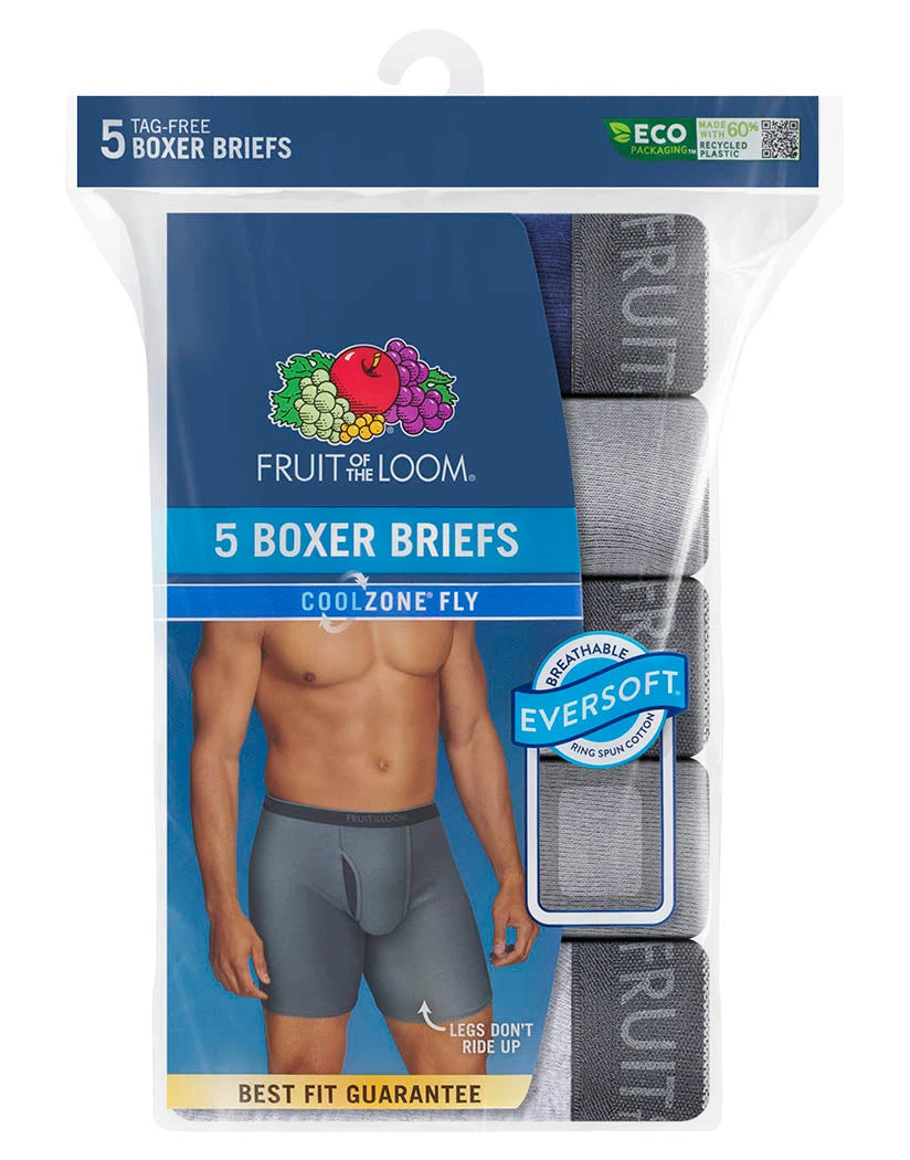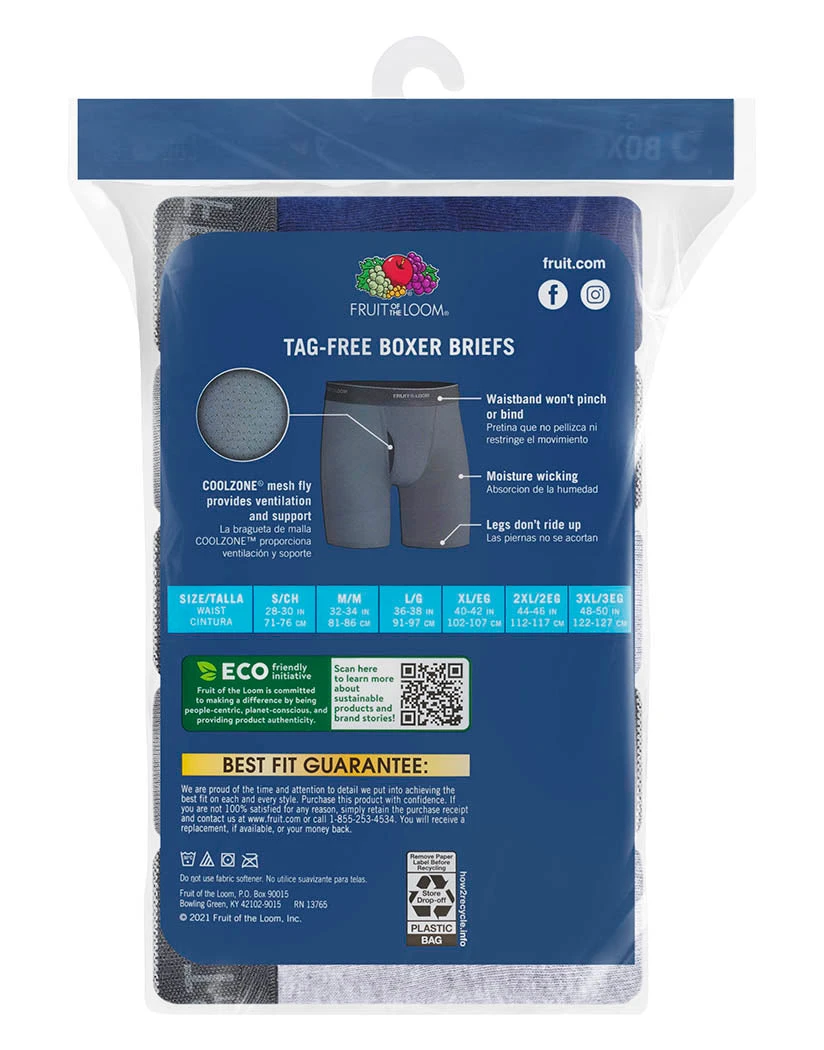 The Fruit of the Loom 5-Pack Coolzone Asst Boxer Brief is a comfortable mid-rise underwear that will have you set for almost every day of the week. The breathable fabric will keep you cool and comfortable all day long. Shop these comfortable styles now!