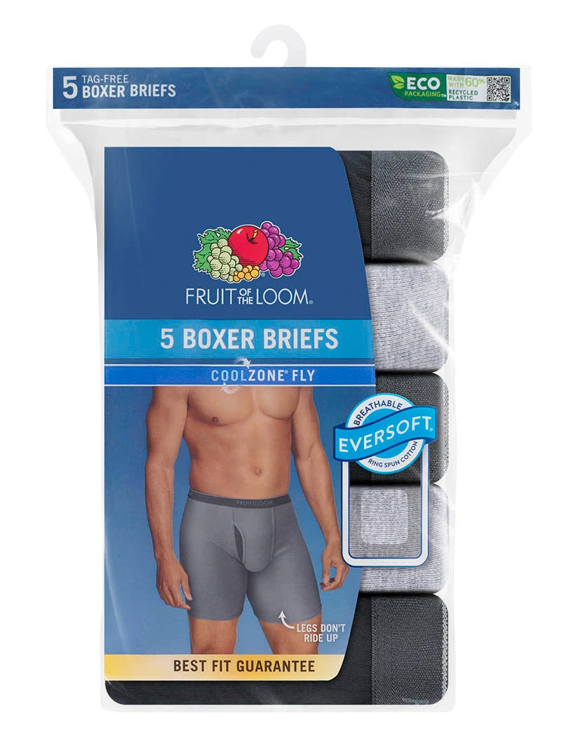The Fruit of the Loom 5-Pack Coolzone Black/Grey Boxer Brief is a comfortable mid-rise underwear that will have you set for almost every day of the week. The breathable fabric will keep you cool and comfortable all day long. Shop these comfortable styles now!