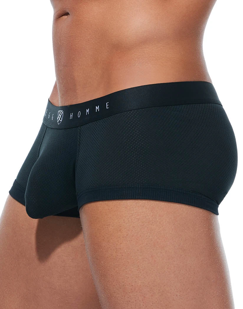 The Gregg Homme Room-Max Air Trunk makes the most out of what you got. The trunk style underwear comes with all over breathable micro mesh fabric and an enhancement system with an internal sling. The maximizer pouch separates and contains your package for a flattering lift. The trunk has a low rise logo waistband made of exposed elastic and fabric cuffs at the bottoms of the legs to hold you comfortably in place. The seamless full coverage rear provides modesty and an effortless feel. This trunk is a must have for any man.