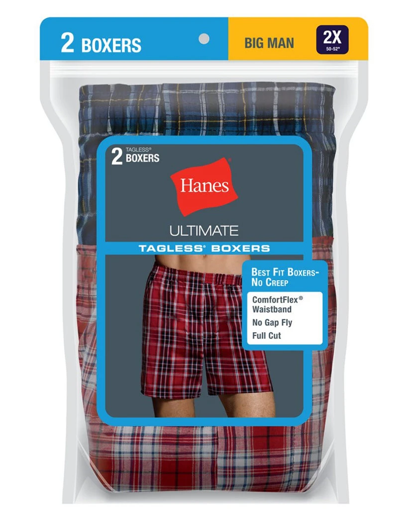 The Hanes Men Tagless Tartan Big Boxer¶ÿis made of an ultra-soft¶ÿcotton blend fabric that feels¶ÿincredible¶ÿagainst your skin. Cozy tartan print adds the traditional style you know and love. The Hanes Classic styles are the most comfortable men’s underwear you can find, perfect for everyDy wear. A 2-pack makes it effortless to fill your top draw with the comfort you need to feel good all Dy long.