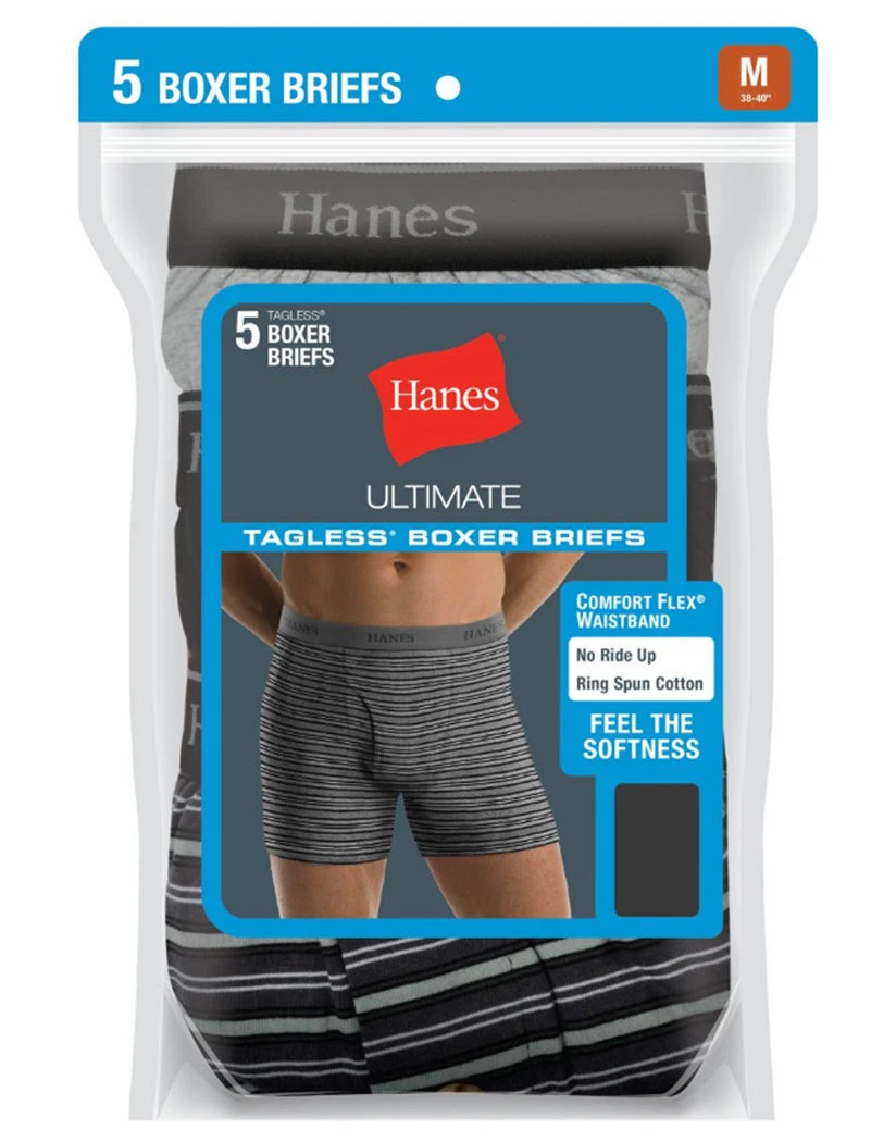 The Hanes Men’s TAGLESS Ultimate Fashion Stripe Boxer Briefs with Comfort Flex Waistband 5-Pack offers a soft to the touch feel that is great for daily wear. A stylish stripped pattern adds a touch of flair to your traditional boxer briefs. Made for all-day comfort, the Comfort Flex waistband holds its shape wash after wash. This men’s underwear style features a close fit, for a flattering, slimmer look. This convenient 5-pack makes it a must have to stock up on everyday essentials.