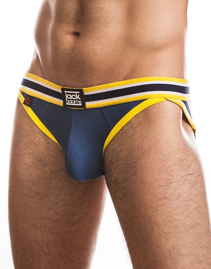 The Jack Adams Elliptical Jock Brief is made from premium cotton material that offers super soft coverage and comfort for daily wear. A striped brief front with a jock design creates a sporty and sexy look that is supportive in all the right places. Complete with a form-fitting design, this underwear was built for top-notch performance.