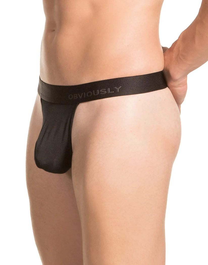 The Prime Man Thong from Obviously provides freedom of movement, without any restrictions, unlike any other underwear available. This premium mens thong is designed to move naturally with your body, for the most comfortable experience possible. AnatoMAX is the largest pouch available from Obviously, providing a national shape with an anatomical design and an incredible amount of space. Reduces heat build-up and that irritating squashed feeling. The waistband is designed to not sag down in the back. This mens underwear moves with your for the maximum amount of freedom and comfort. The low cut is ideal for men with a slim build. The care label is printed inside the waistband to eliminate any discomfort.