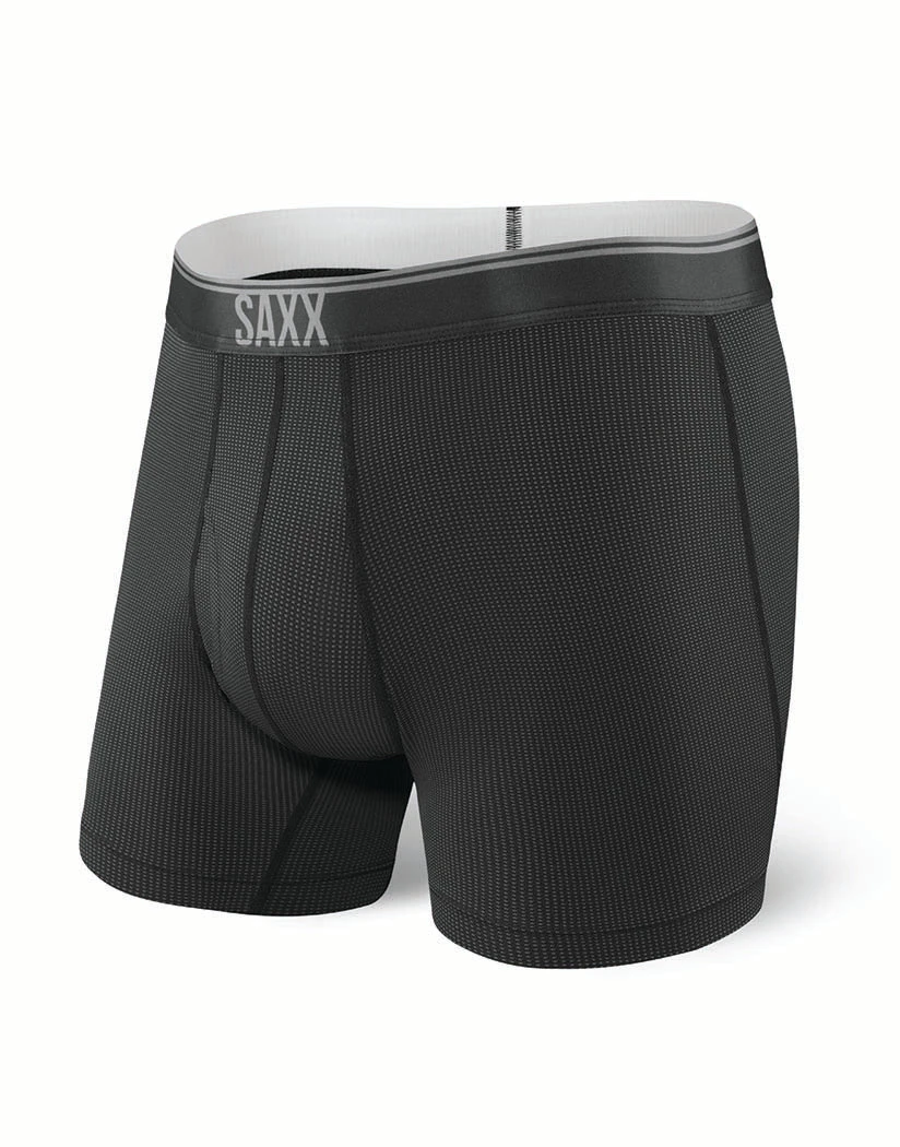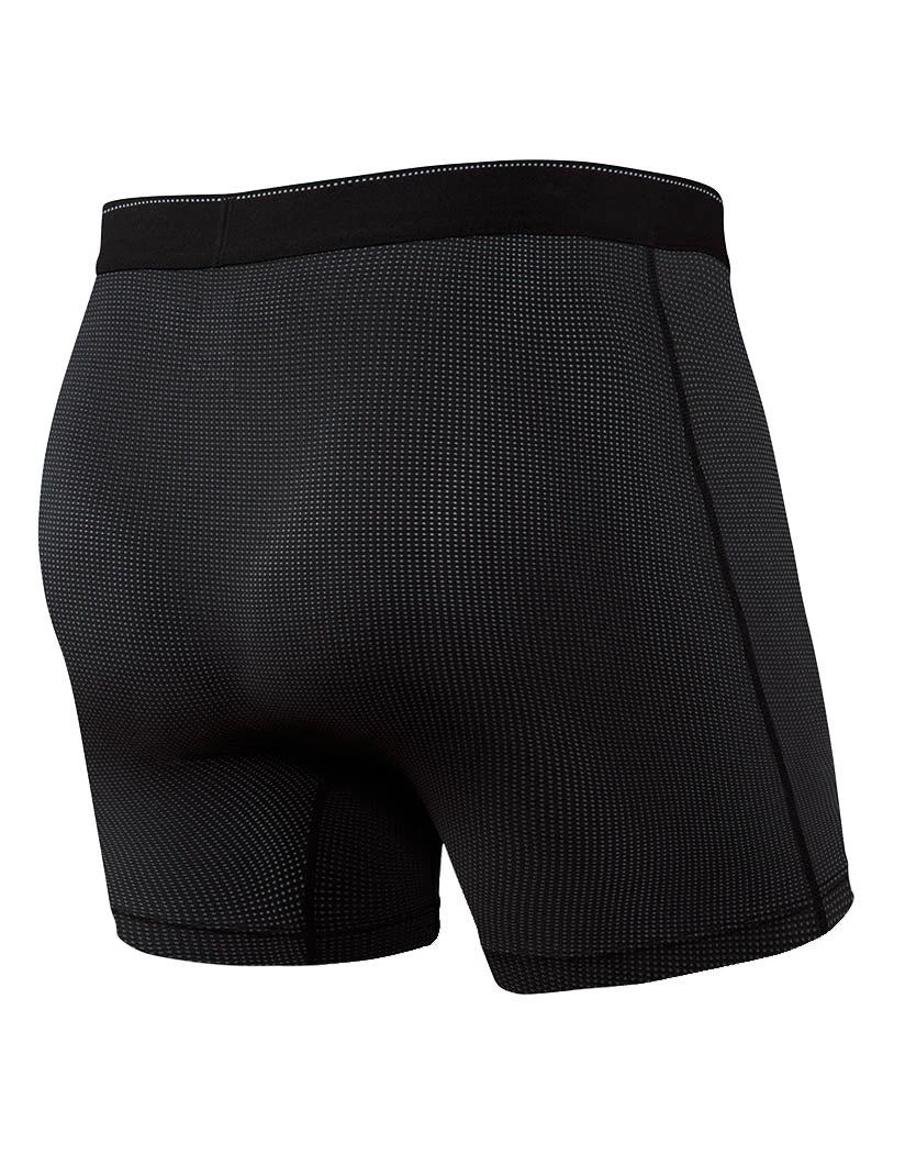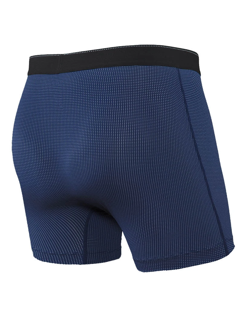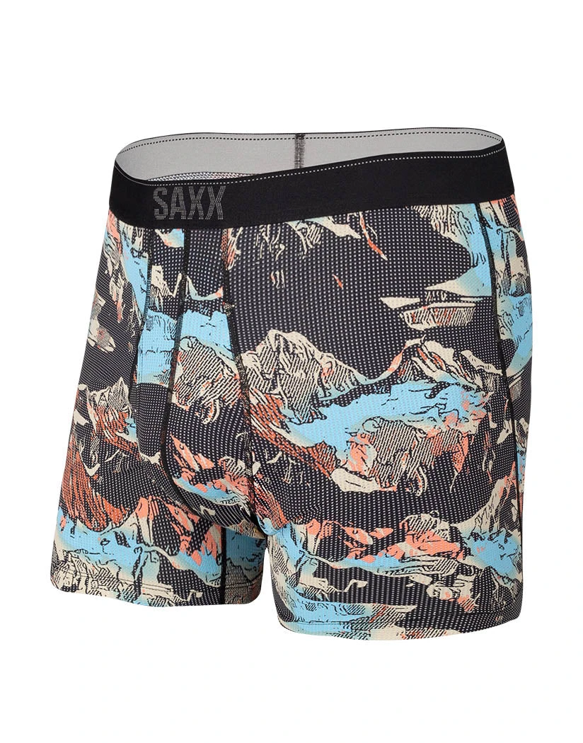The Quest Boxer Brief from SAXX is a pair of underwear made for performance, function, and comfort. Constructed from mesh fabric, this boxer brief is lightweight and quick drying. It has the patented SAXX contour pouch, with internal mesh panels to keep you cool and comfy. On the exterior of the contour pouch, is a fully functional fly. The mid-rise waistband is exposed soft elastic, and resists folding. It also features a print design and the SAXX brand name logo. The Quest Boxer Brief are truly some of the best underwear on the market.