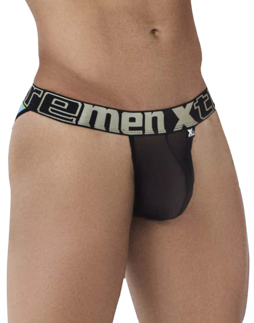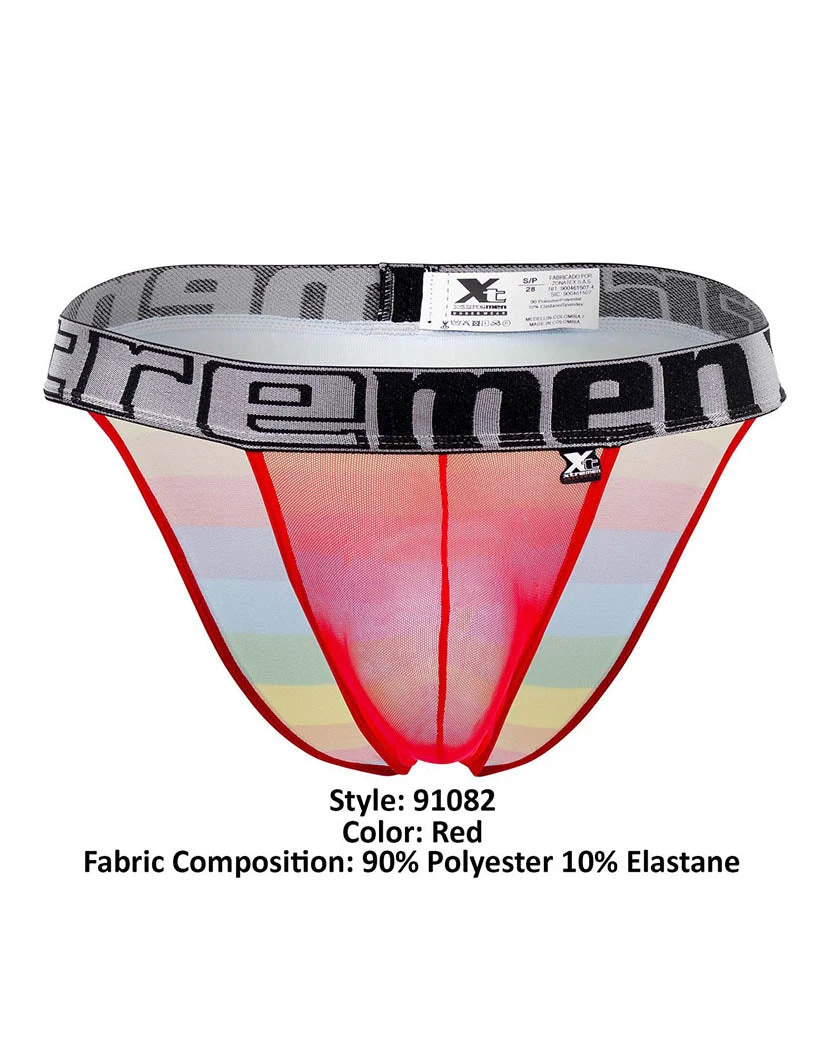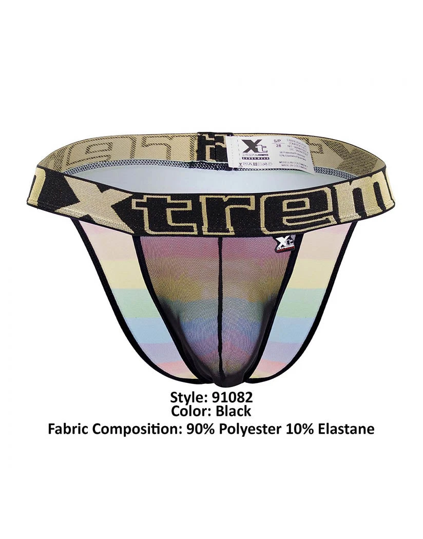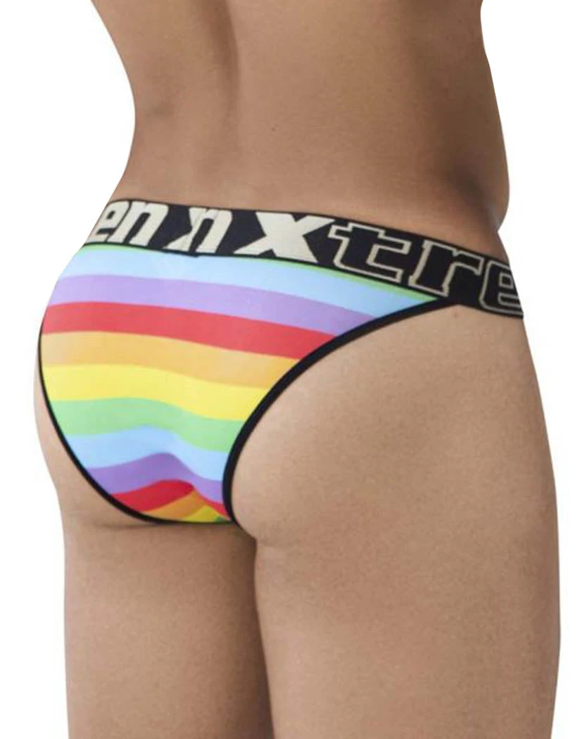 The Xtremen Microfiber Pride Bikini is made of stretchy microfiber fabric. The front is sheer and solid-colored while the back has a bright Pride pattern. The bikini’s open sides give you 360 flexibility. Its low-rise waist is held in place by an exposed elastic waistband. This bikini has a contour pouch for structure, definition, and protection. The moderate coverage back keeps everything modest and comfortable.